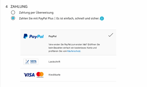 Paypal, Kreditkarte, Überweisung, Rechnung.